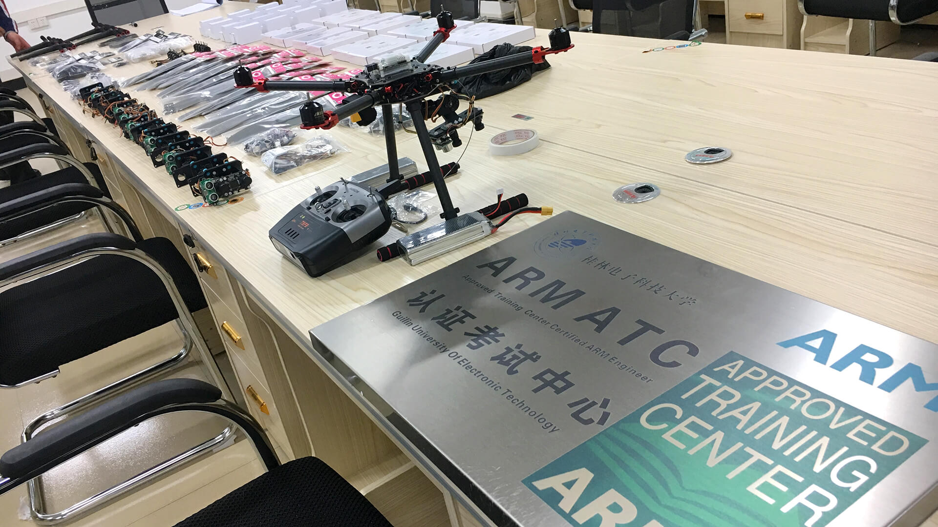 中航恒拓?zé)o人機(jī)團(tuán)隊(duì)在對(duì)桂林電子科技大學(xué)機(jī)電工程學(xué)院、信息與通信工程學(xué)院、計(jì)算機(jī)科學(xué)與工程學(xué)院進(jìn)行了近一周的培訓(xùn)后,2018年3月23日,桂林電子科技大學(xué)無(wú)人機(jī)實(shí)驗(yàn)室正式進(jìn)入驗(yàn)收環(huán)節(jié)。