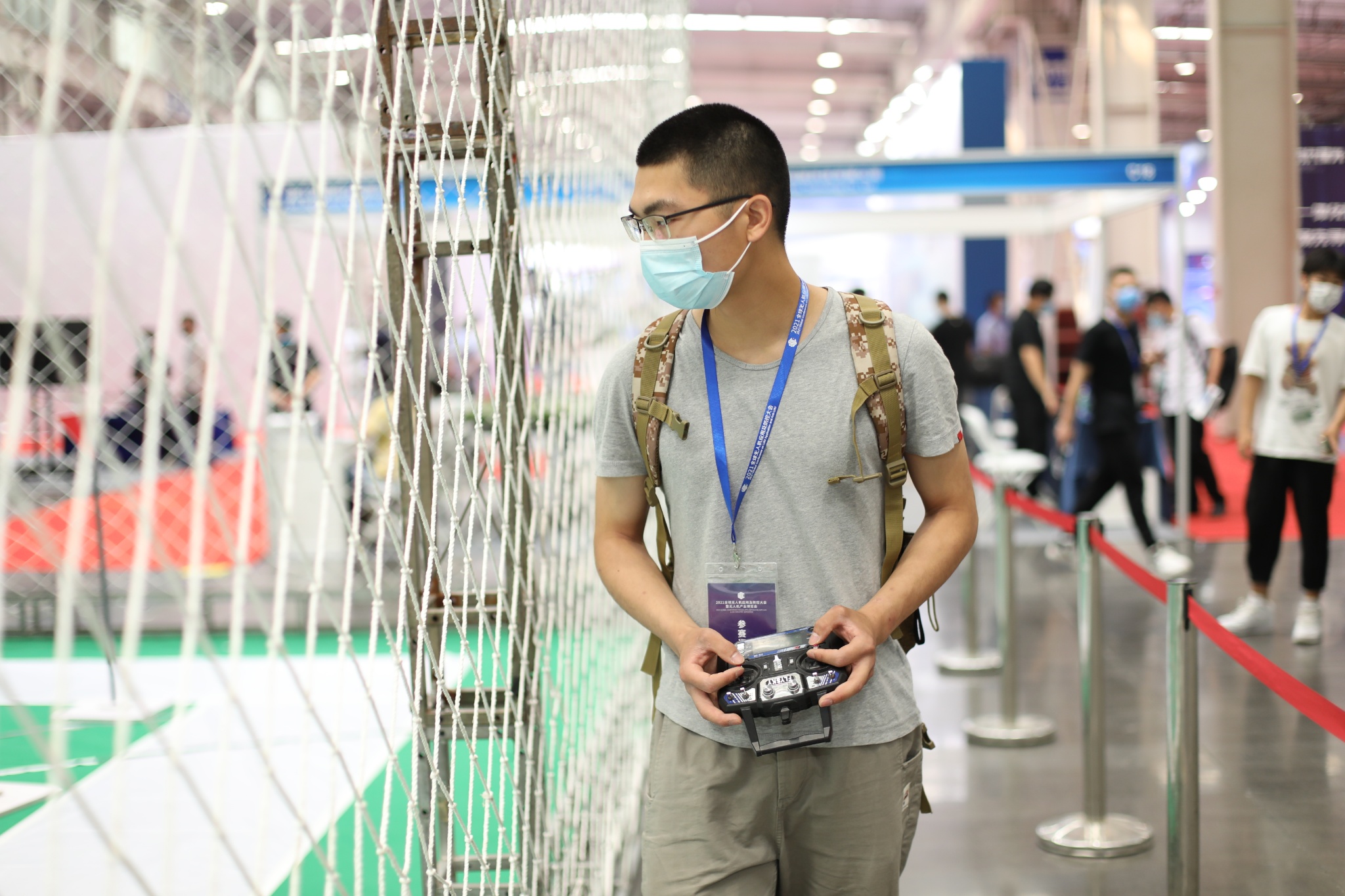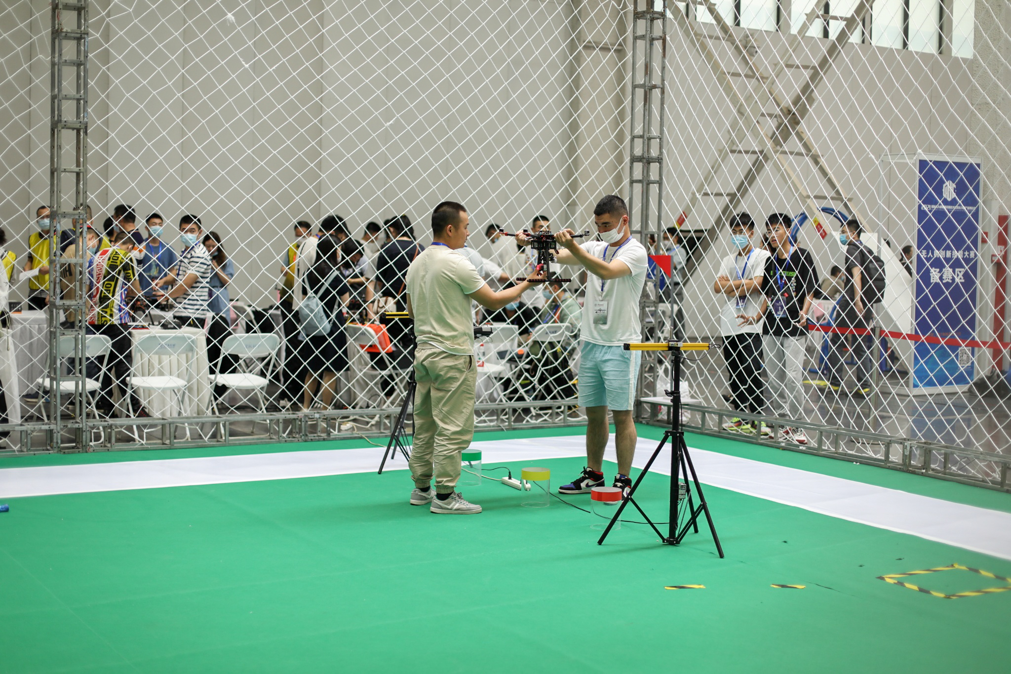 選手在調試無人機