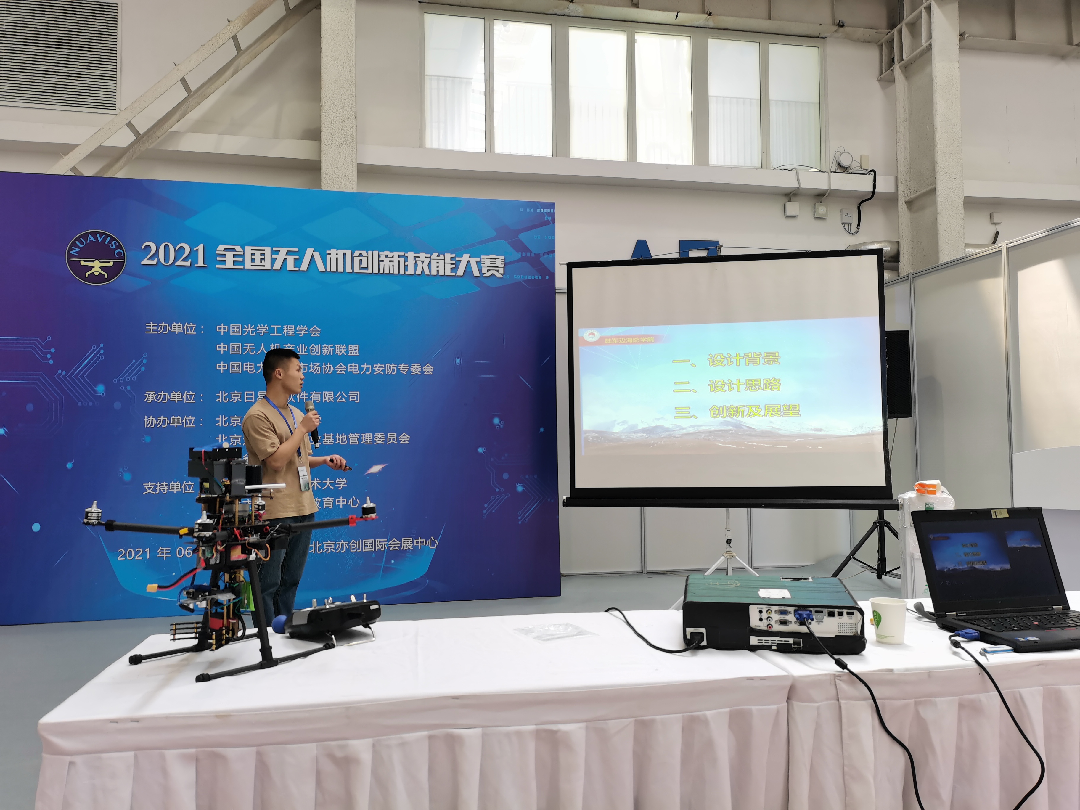 2021全國無人機創(chuàng)新技能大賽6月9日在北京亦創(chuàng)國際會展中心正式開幕,本次大賽由中國光學工程學會、中國無人機產業(yè)創(chuàng)新聯(lián)盟、中國電力技術市場協(xié)會電力安防專委會聯(lián)合主辦,北京日星宇軟件有限公司承辦。中航恒拓技術副總梁瑞彪擔任此次大賽專家委員會專家及裁判。此次大賽采用我司生產的TH-CX500無人機設備作為創(chuàng)新設計賽項指定參賽設備,并且由我司負責大賽全程技術支持。