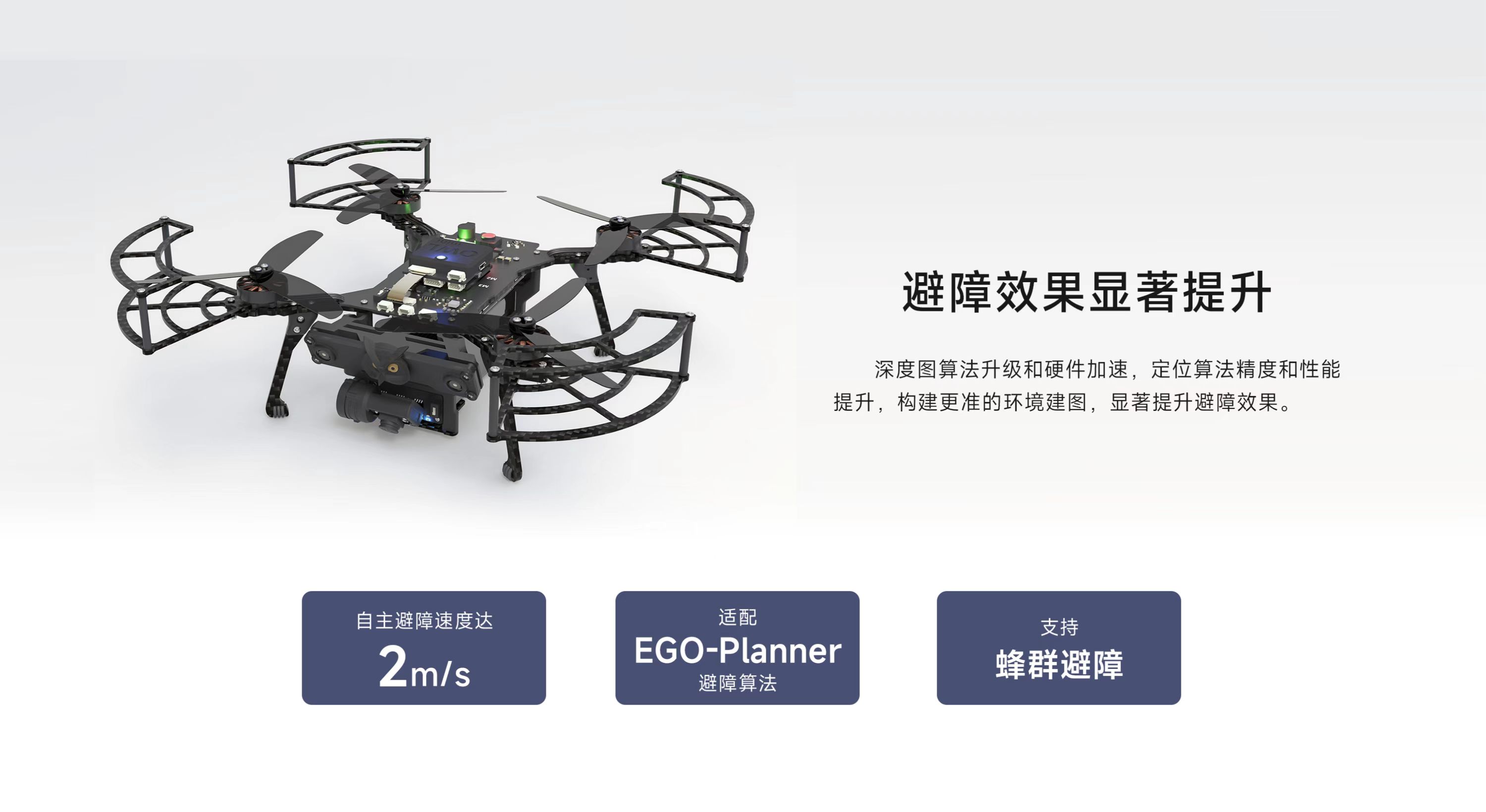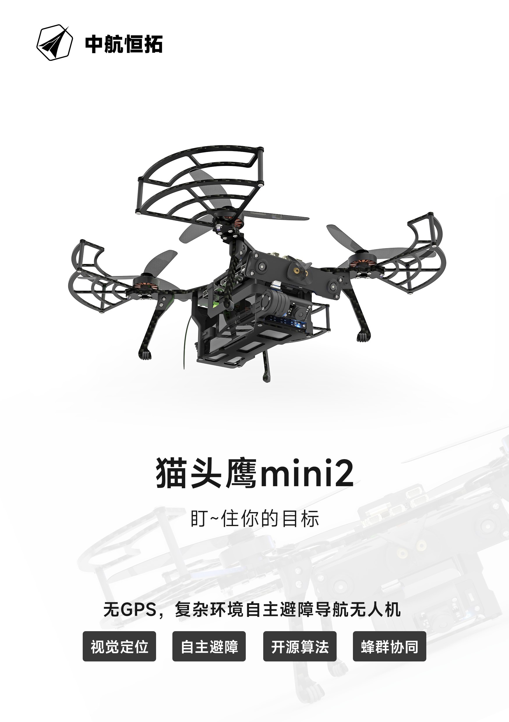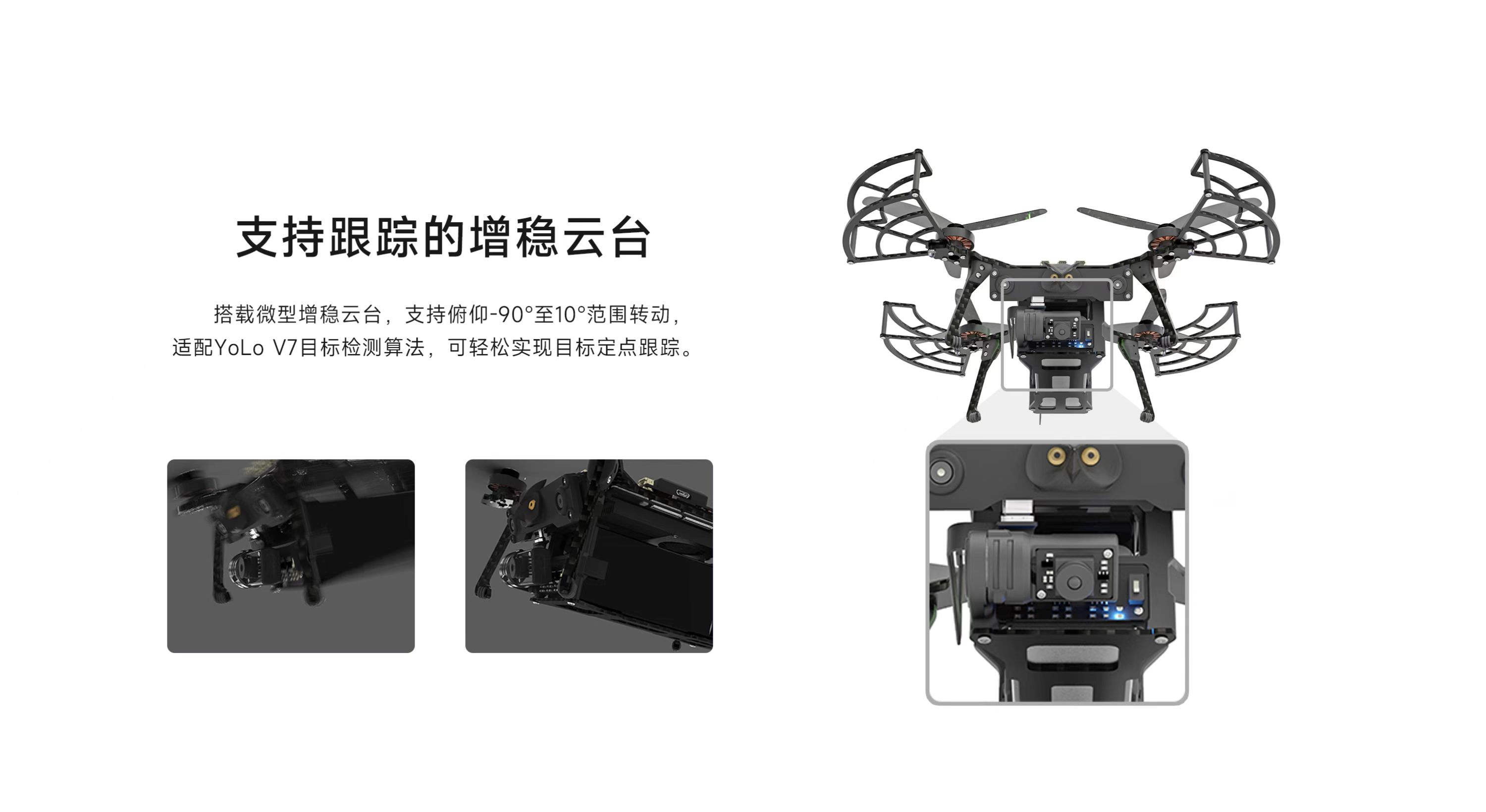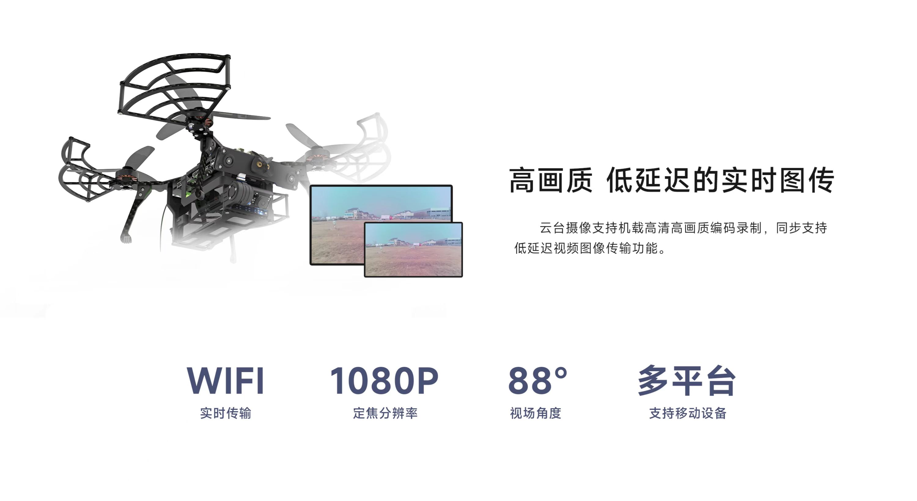 AI視覺無人機(jī)蜂群開發(fā)平臺貓頭鷹mini 2,為教育/科研而升級。軸距200mm,整備質(zhì)量617g,續(xù)航28min,視覺定位飛行速度達(dá)20m/s,自主避障飛行速度達(dá)2m/s。自主研發(fā)雙目視覺,搭載國產(chǎn)機(jī)載計(jì)算機(jī),算法升級,更穩(wěn),更準(zhǔn),更快,更智能;搭載8核處理芯片和6 TOPS NPU,具備強(qiáng)大的學(xué)習(xí)與計(jì)算能力,為用戶帶來更多開發(fā)體驗(yàn);搭載微型增穩(wěn)云臺,適配YoLo V7目標(biāo)檢測算法,可輕松實(shí)現(xiàn)目標(biāo)定點(diǎn)跟蹤;云臺攝像支持機(jī)載高清高畫質(zhì)編碼錄制,同步支持低延遲視頻圖像傳傳輸功能;新增無人機(jī)模擬仿真器VISIM,適用無人機(jī)單機(jī)控制、路徑規(guī)劃、集群、蜂群等算法仿真驗(yàn)證,可以極大提升貓頭鷹無人機(jī)功能研發(fā)、測試的效率和安全性。