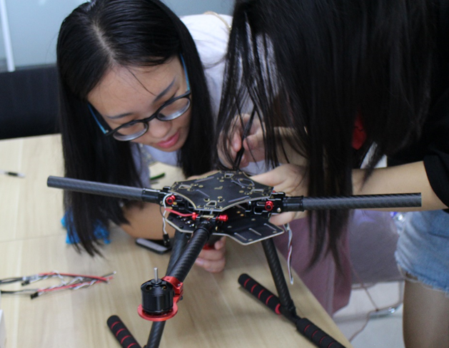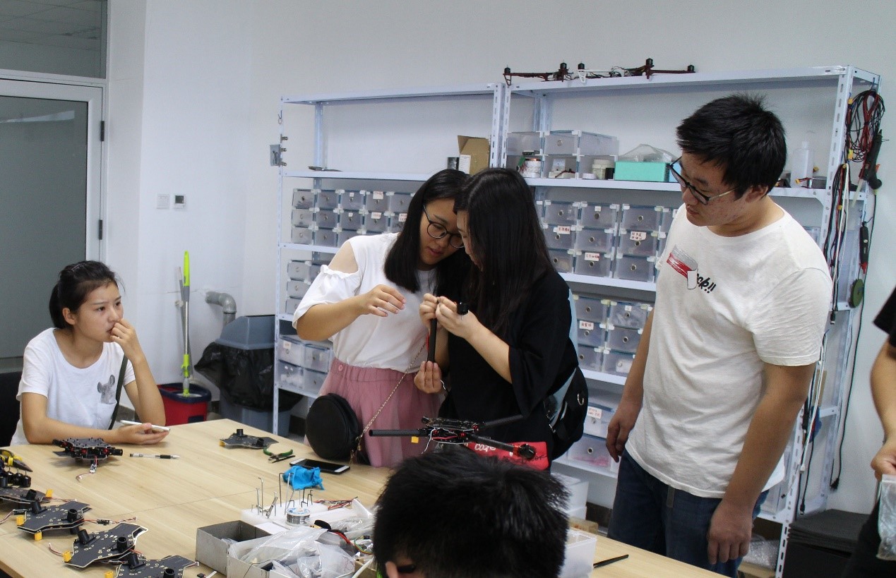 工程師帶領(lǐng)學(xué)生認(rèn)識無人機構(gòu)造